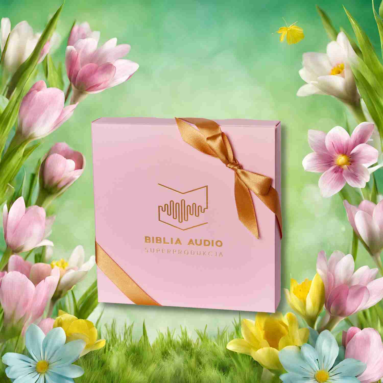 - W pięknym różowym pudełku, przewiązanym złotą wstążką znajdziesz nie tylko pendrive z opowieściami Biblii Audio KIDS, ale także uniwersalną karteczkę okolicznościową z miejscem na Twoje życzenia.